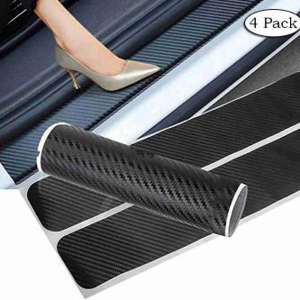 4 Pcs Car Door Sill Protector Universal 3d Carbon Fiber Scuff Protective
