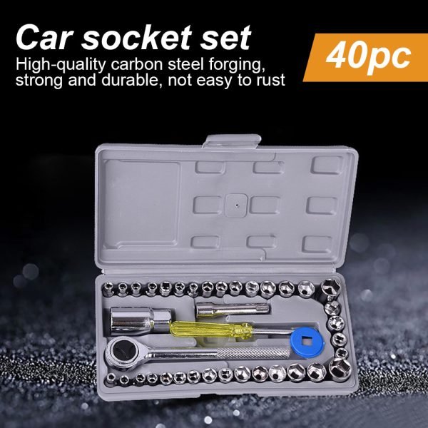 Description: Upgrade your car maintenance with the 40-Piece Aiwa Socket Wrench Tool Kit & Screwdriver Set. Designed for reliability and ease of use, this toolkit ensures high performance and durability for all your automotive needs.